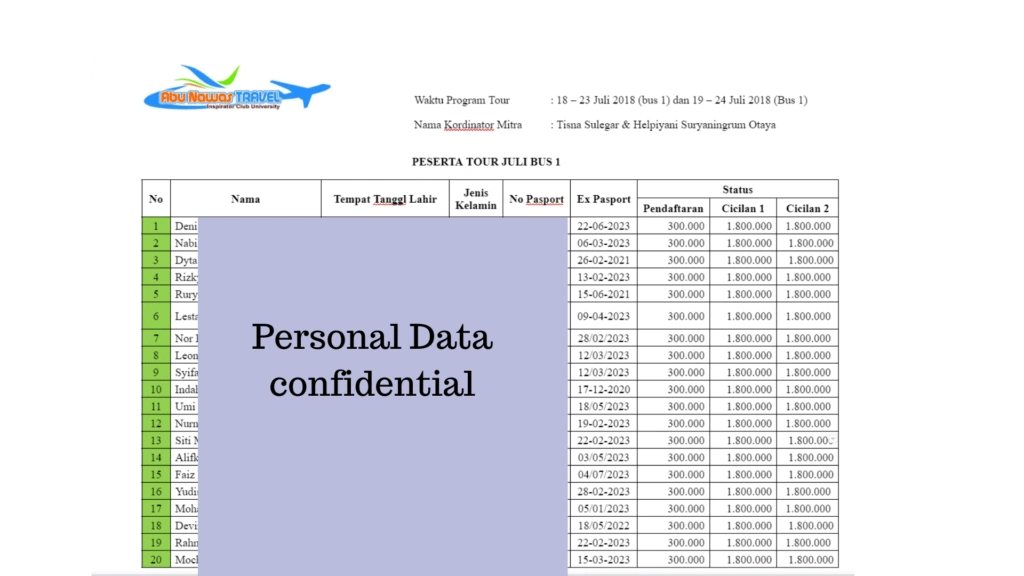 In this project with Abu Nawas Travel, I worked as a performance marketing where I had to collect data on trip participants to three ASEAN countries (Malaysia, Singapore and Thailand). There are several activities that I did in this project including: