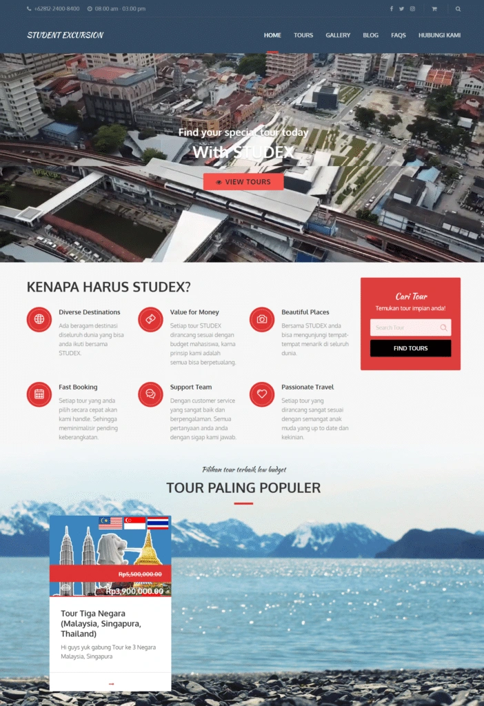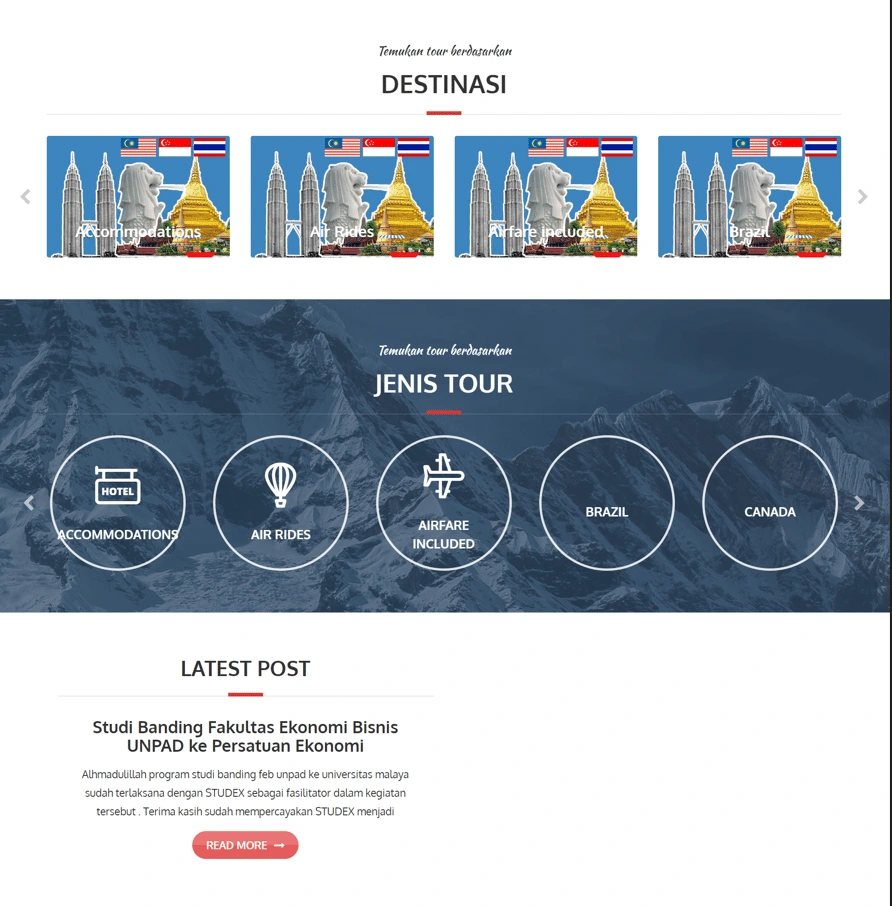 This project is about creating a website as a whole, starting from the appearance of Home, Tour, Shop, Pages and Blog for the Travel company CV Studex Group Indonesia.