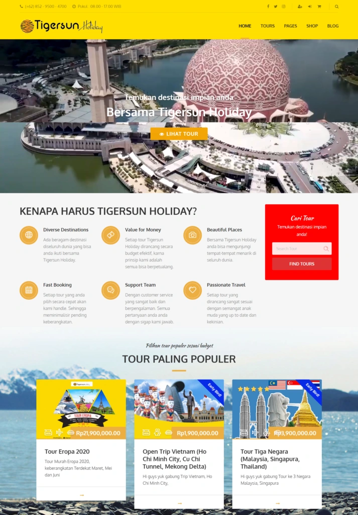 This project is about creating a website as a whole, starting from the appearance of Home, Tour, Shop, Pages and Blog for the Travel company Tigersun Holiday.